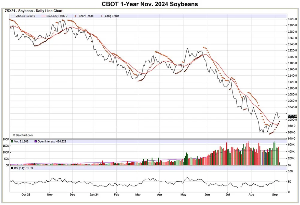 Soybeans: CBOT soybean futures posted 18 to 19 cent losses across the nearby contracts on Friday but posted weekly gains for the week for November of a nickel.
