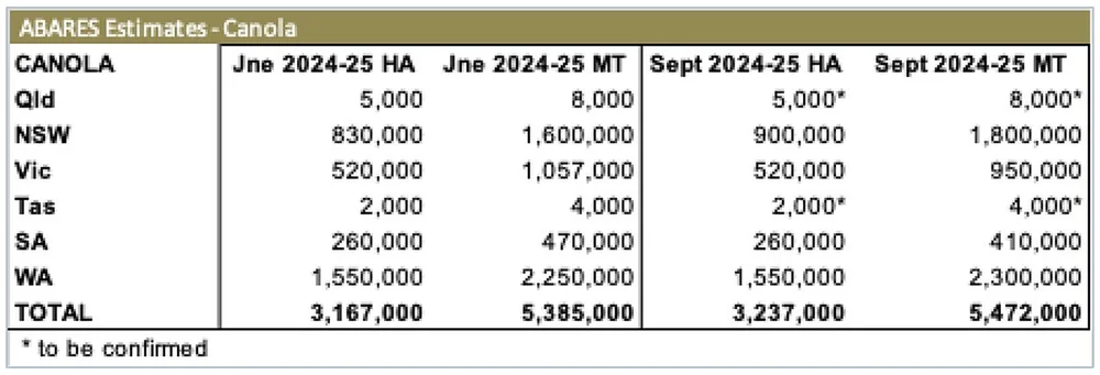 Canola production has seen an increase from earlier estimates in NSW and WA but drops in Victoria and SA.