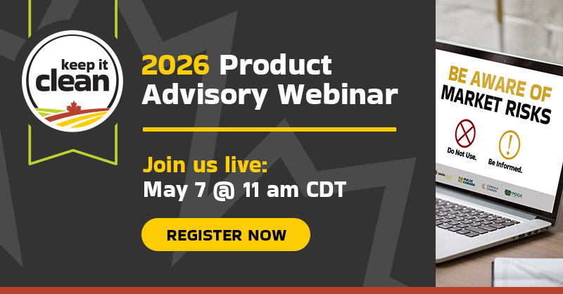 Keep it Clean recommends growers always consult their grain buyers before applying any crop protection products on the Product Advisory to keep their crops market ready throughout the growing season.