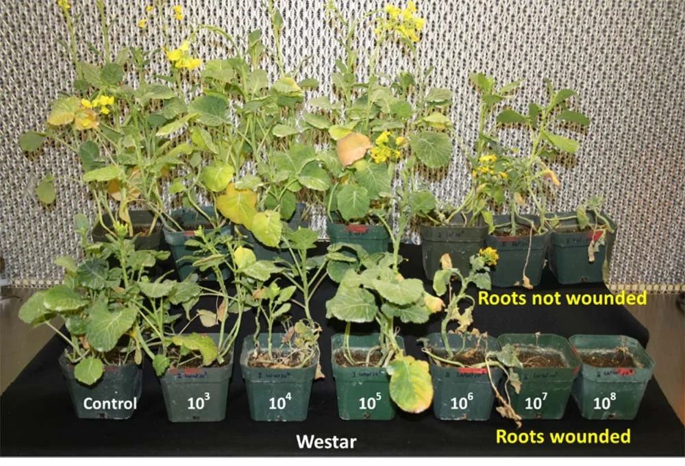 - Lm inoculum at >105 spores/g soil can result in severe blackleg via root infection, especially if roots are wounded (by root maggots, for example).