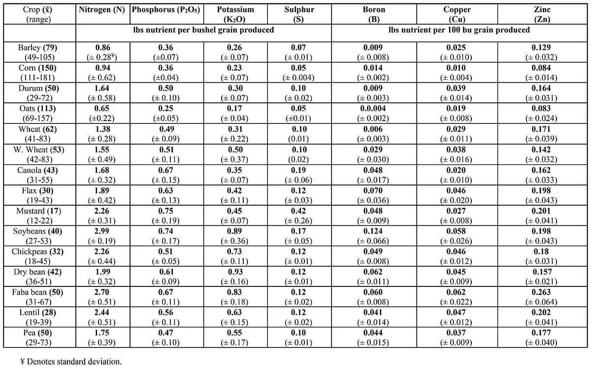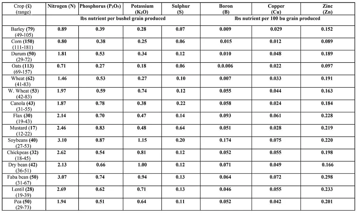 - The revised nutrient uptake and removal chart was developed specifically for crops grown in Western Canada. Importantly, the data demonstrates considerable variability around the mean due, in part, to known differences in weather and management, and thus these estimates are to be used as guidelines and should not be viewed as prescriptive.